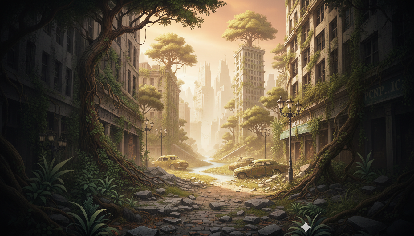 『Dr.STONE』が優れているのは、文明崩壊後の世界を単なる舞台装置として扱わない点にある。自然に飲み込まれていく都市、風化した建造物、時間の経過を感じさせる環境描写が、世界観に現実味を与えている。